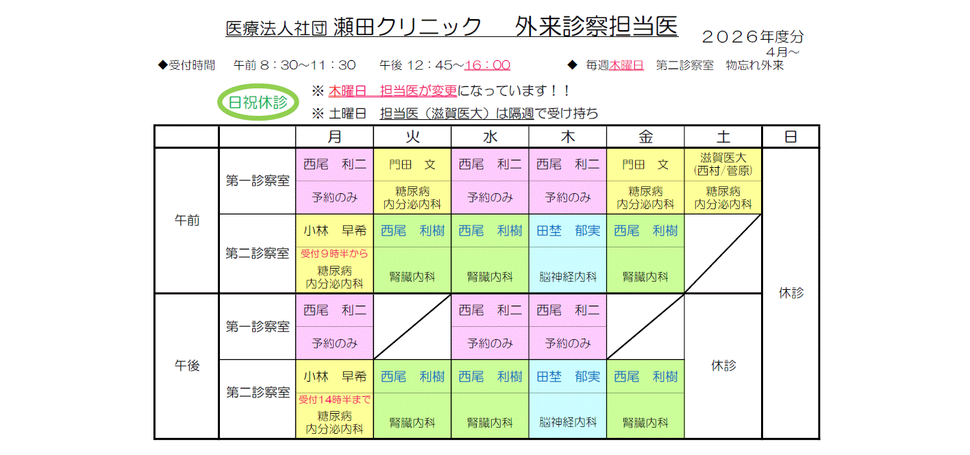 | ■予約:予約可(月・水・木の定期受診の方) |